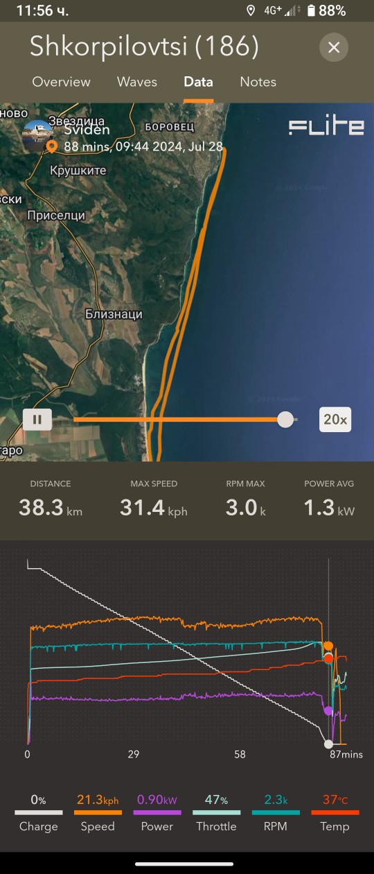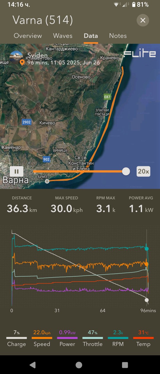 И, някои преходи излязоха мнооого дълги/енергоемки и не стигна тока - последния километър Тюленово-Болата ми отне още час да бутам дъската с 0% ; също и накрая Фичоза-Шкорпиловци :/